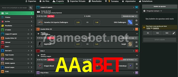 A aposta AAaBet oferece aos jogadores a experiência mais conveniente de apostas em eSports!